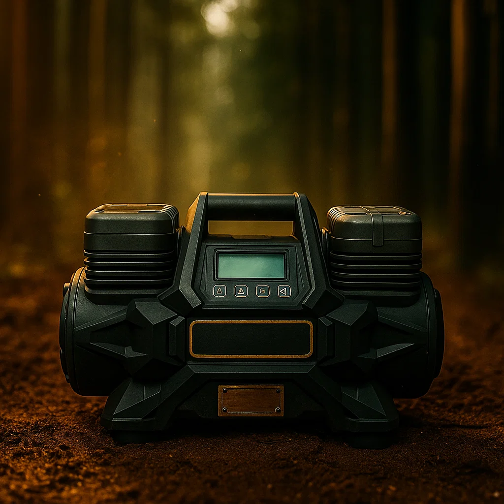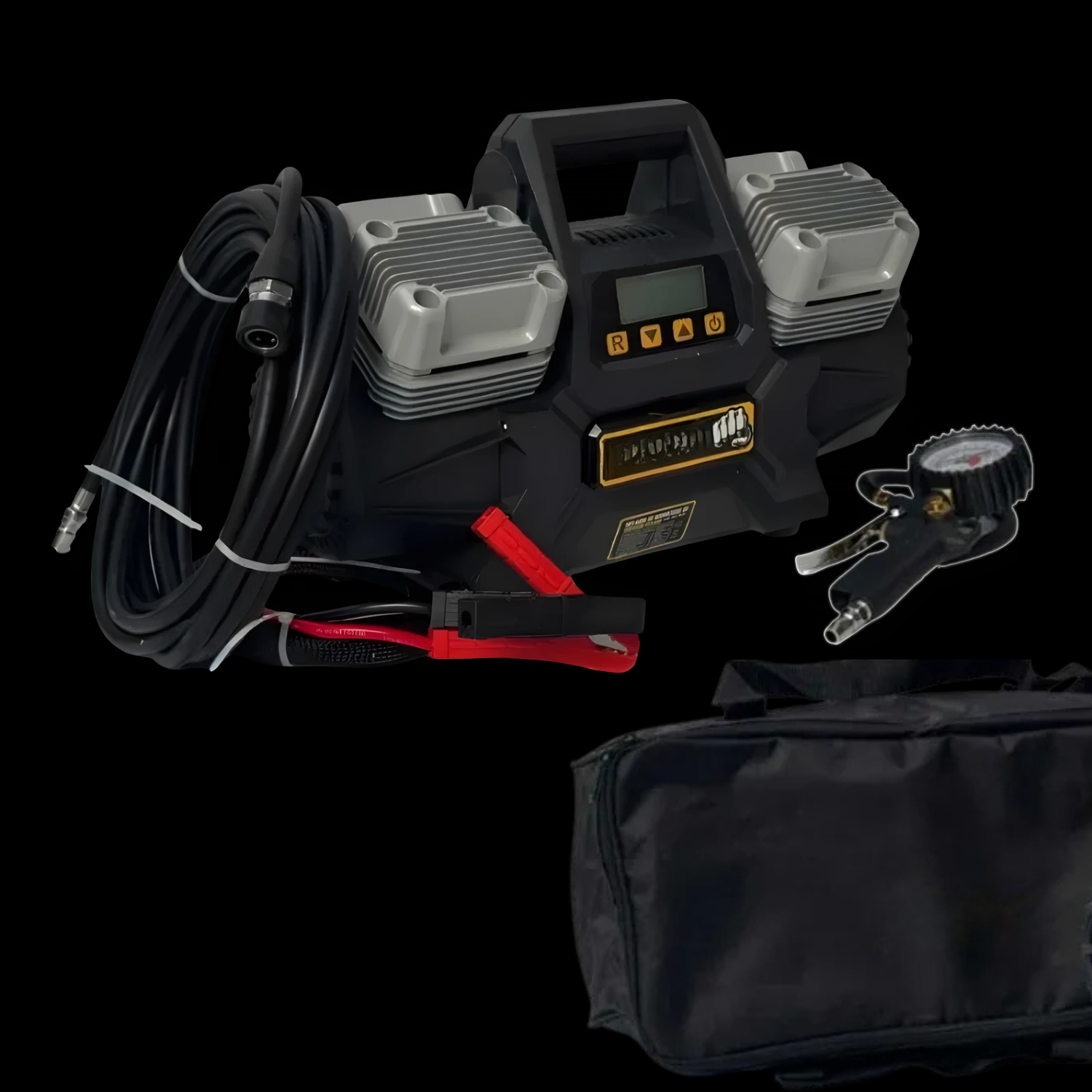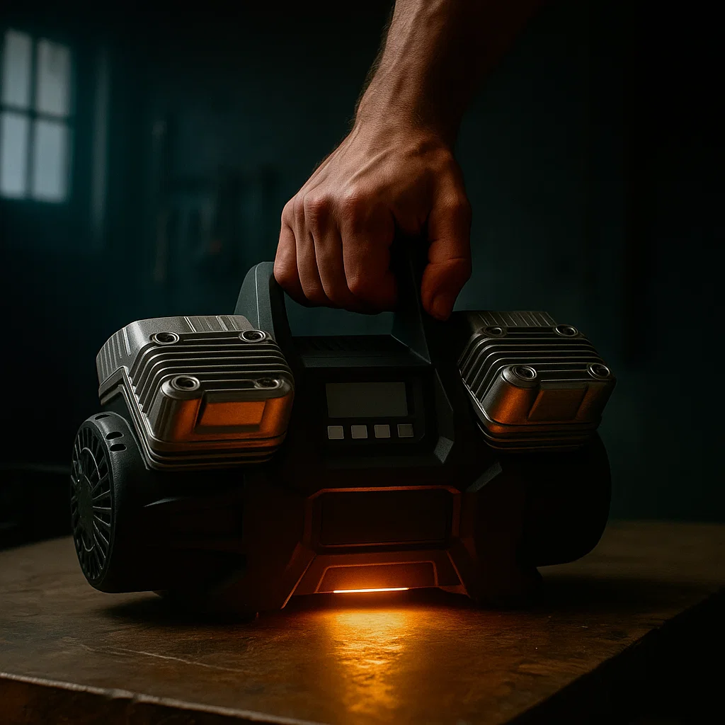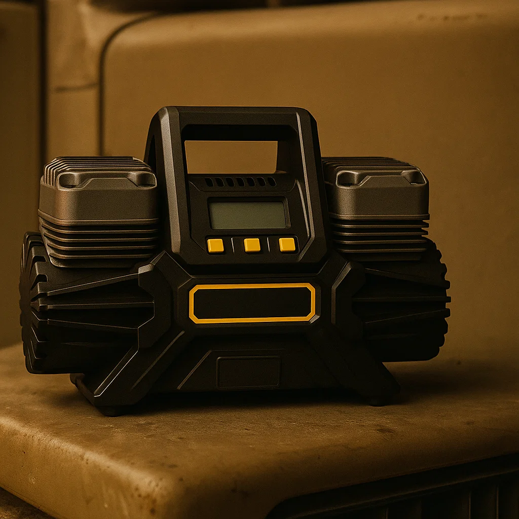 Ano, kompresor má funkci automatického zastavení a vestavěný digitální tlakoměr.