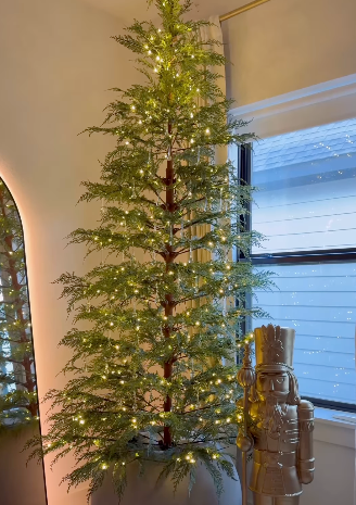 Le luci calde si intrecciano con dettagli delicati per creare un’atmosfera raffinata e accogliente. Ogni ramo è valorizzato da decorazioni leggere che esaltano la naturale bellezza dell’albero, rendendolo perfetto per le feste e per tutto l’anno.