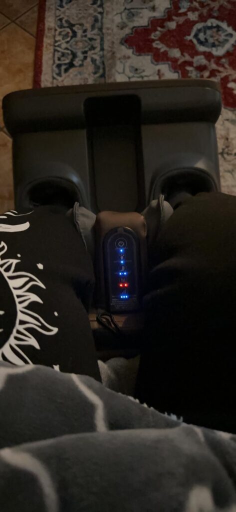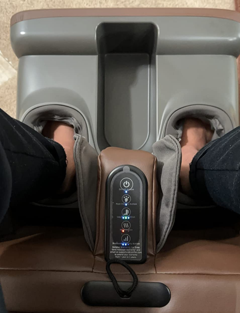 "O melhor presente que já me ofereci. A compressão e o calor são maravilhosos. Parece uma massagem profissional, mas em casa e quando eu quiser."
