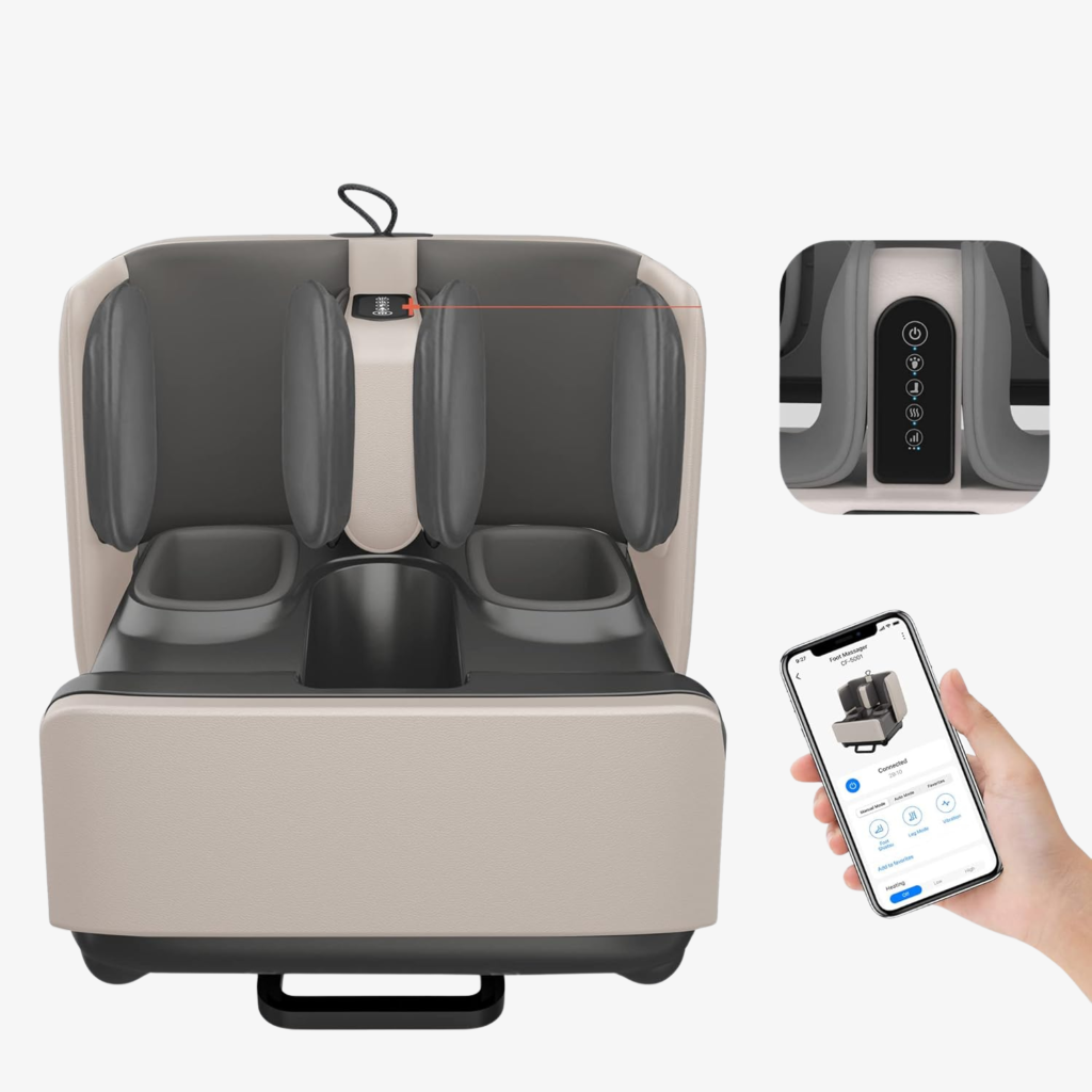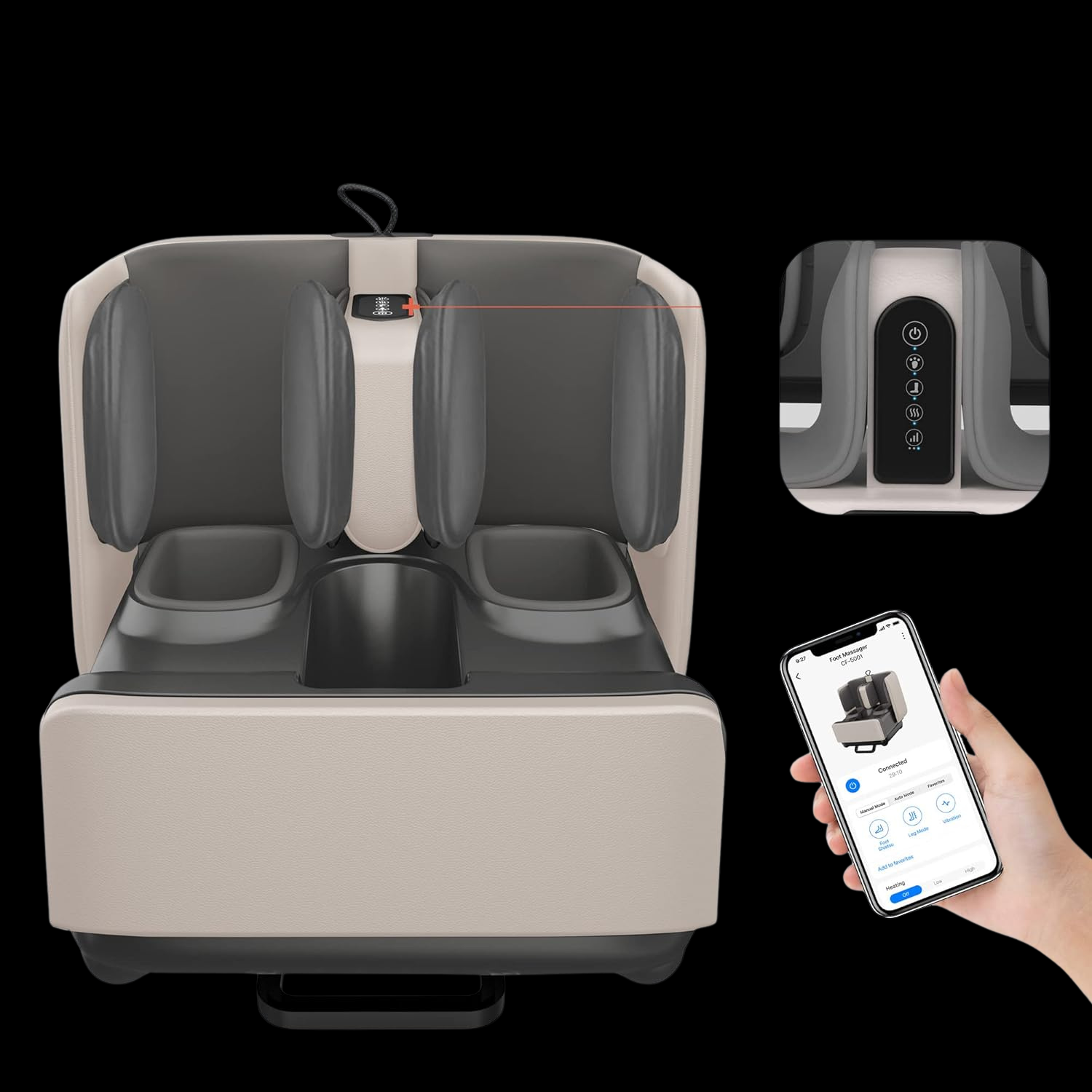 Massageador 2 em 1 para pés e gémeos com Controlo por APP, Calor, Compressão e Função Otomana para o Descanso