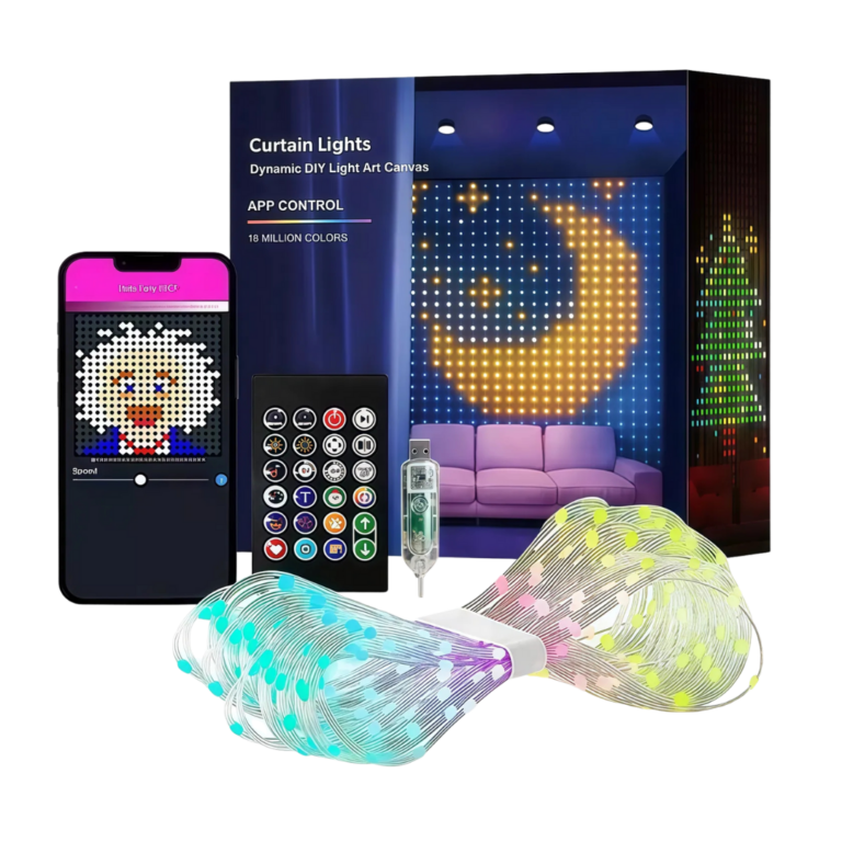 Personaliza patrones y textos directamente desde la app y elige los efectos ideales para cada ocasión: desde una velada romántica hasta una fiesta de cumpleaños, desde las decoraciones navideñas hasta hacer tu salón más acogedor. El mando a distancia con temporizador te permite programar el encendido de las luces y controlar cada bombilla individualmente, creando animaciones únicas. Gracias a la protección IP65, es ideal tanto para interiores como para exteriores: perfecta para hogares (en ventanas, balcones o terrazas), jardines, terrazas y escaparates.